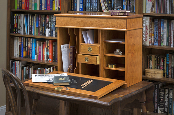 “I used lines, dimensions and materials typical of the period in the (desk) design, but the design itself was my own. For that, I studied field desks belonging to Union Captain Edwin Stivers of Illinois to represent the North, and generals Robert E. Lee and Stonewall Jackson to represent the South. I pulled design elements from each to blend with my overall design,” Hamler explains. “The result was everything I wanted it to be, and I think it’s the best work I’ve ever done.”