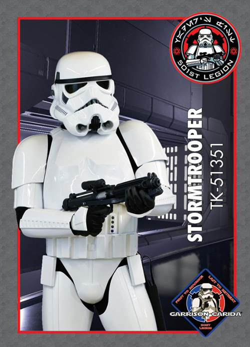 “Fully decked out in costumes that look like we’ve stepped off the screen, we make appearances at charity and community events, conduct hospital visits, attend fundraisers, visit libraries and more,” Hamler says. “It’s great fun, especially when working with kids. And I suppose I’ve reached the ultimate level of sci-fi geek: I have my own trading card, fully decked out in my storm trooper armor.”