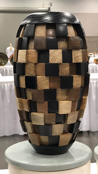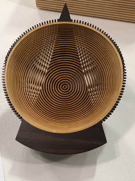 Next door was the exhibit room, which included hundreds of turnings of every imaginable stripe. There was a modest-sized juried section, but most of the pieces were part of the “Instant Gallery.” Any turner coming to the convention can have their piece(s) displayed in the instant gallery on one of many long tables filling the room. Not surprisingly, turnings ran the gamut from the ridiculous to the sublime. Some of the pieces shown are from the Instant Gallery.