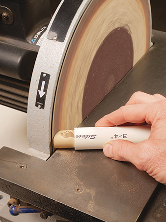 Synthetic wine corks work great for cleaning abrasives. But all it takes is accidentally bumping your fingers against the spinning sandpaper once, when the cork slips or wears down too far, to want some sort of a holder for the cork that makes this task safer.