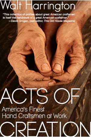n351WSActsOfCreationBookCoverIn his book Acts of Creation, former Washington Post Magazine writer Walt Harrington has compiled profiles of 13 American craftsmen and one woman, including woodworkers Sam Maloof, Michael Seward and Robert Reade; timber framer Tedd Benson; millwright Derek Ogden; and those who work in copper, plaster and stone. The book explores their work and the nature of creativity itself. Published by The Sager Group LLC (ISBN 9780989524186), Acts of Creation is priced at $12.92 as a paperback version and $9.99 for a Kindle version.
