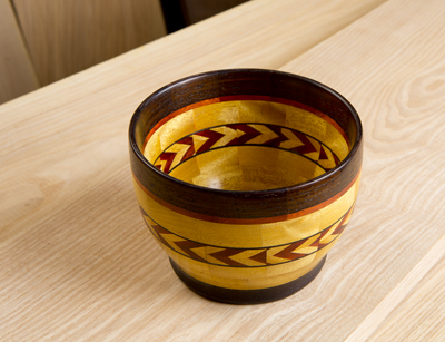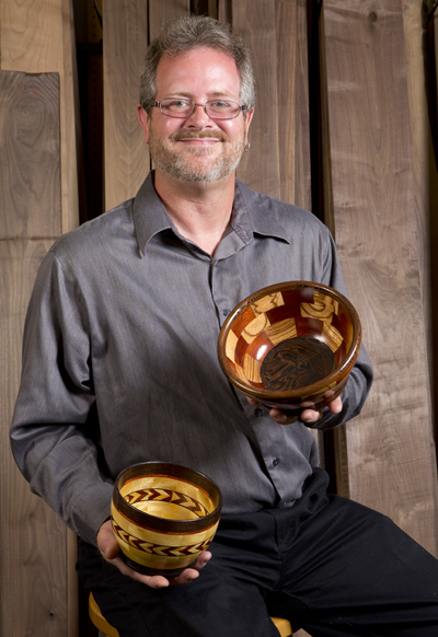 Jay Thompson with “Segmented Bowl” and “Yellow Segmented Bowl”
