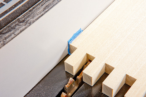 Build up some tape strips on a mismatched drawer joint before cutting grooves for the bottom panel.