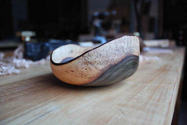 The walnut for a recent Roorkee chair project was harvested from a tree that blew down in a storm just 20 miles from where she built the chair. Anne also salvaged some branches from the tree for making bowls and spoons.