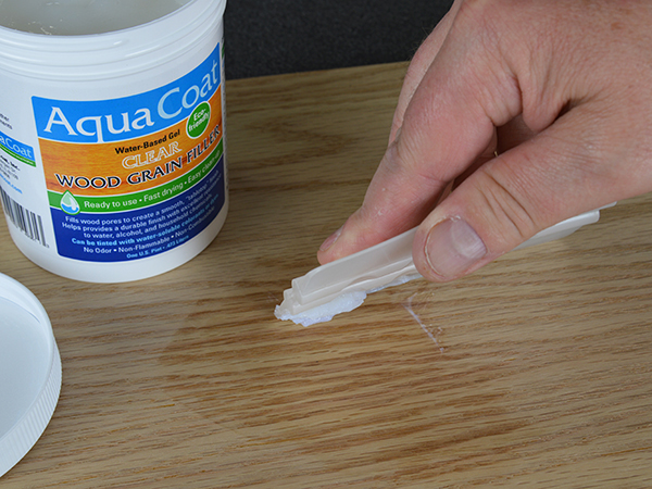 By contrast, the gel consistency of Aqua Coat grain filler makes it easier to apply because it has enough body not to drip while still flowing smoothly into the grain. It’s ready to use and requires no dilution, which helps to minimize waste. The water base also makes the filler dry quickly and offers quick cleanup.