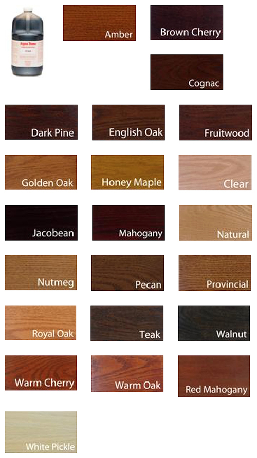 Aqua Coat manufactures 22 colors of water-based wood stains as well. They are available in pints, quarts or gallon sizes, plus concentrated tinting colors to make custom stains and transparent toners for warming up the look of any Aqua Coat topcoat. Low odor and non-flammability are two big advantages of switching to water-based stains, but they also dry much more quickly than oil-based stains.