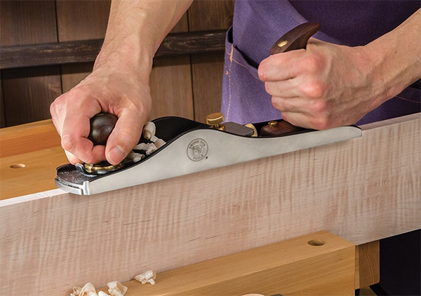 No. 4 Smoothing Plane (item 58837; $139.99) takes the thinnest of shavings for an exceptionally fine finish. It also makes a good general purpose plane or first plane for your collection. Its sole measures 2-1/2 x 10 in. The 1/8-in.-thick blade installs bevel down and beds against the frog at 45 degrees. Bench Dog’s No. 4 Smoothing Plane weighs 4.18 lbs.