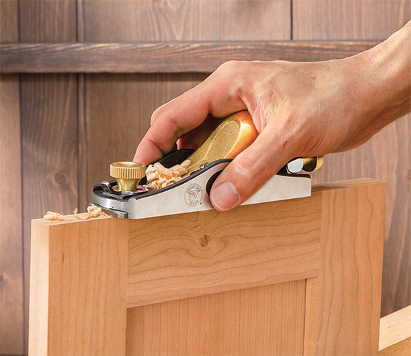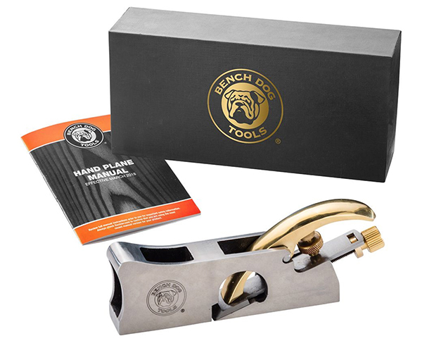 No. 60-1/2 Block Plane (item 51006; $99.99) has an acute bedding angle and finely adjustable mouth opening to make quick work of adjusting miters, joinery and fitting doors and drawers. You can easily adjust the mouth opening to produce fine shavings while minimizing tearout. Since the frog and base are a one-piece casting, blade chatter is virtually eliminated. Its sole measures 1-5/8 x 6-1/4 in. The 1/8-in.-thick blade installs bevel up and beds against the frog and base at 12 degrees. Bench Dog’s No. 60-1/2 Block Plane weighs 2.2 lbs.