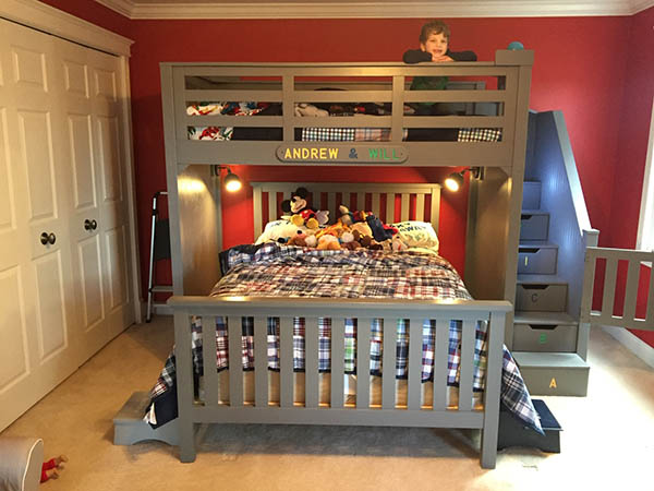 “I have made some large wood projects in my day: dining room tables, outside benches and a hutch, to mention a few. But the biggest was a bunk bed for my two boy grandchildren. It took about five months. I built it in my basement and dry fitted it so I could reassemble it at my daughter’s house but still needed help to move some of the subassemblies. I took the design from a bed manufacturer, made some enhancements, drew up the plans, and added some other features: drawers in the steps, lights in the lower section and up the steps, etc. It was, by far, the most challenging piece I built so far. Loved every minute of the process.” – Bill Cafero