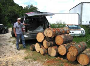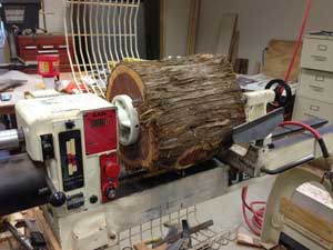 While he does order some woods, like ash and maple, from a northern sawmill, most of Bob’s wood is “found” or “curb” wood. “We get a lot of tornadoes and storms, and I’ve got the chainsaws in the back of the pickup and I’m out there getting wood people have left on the curb. I never know what I’m going to find until I get a big old log on the lathe, and get the bark off and start seeing the grain and how it flows and that.”