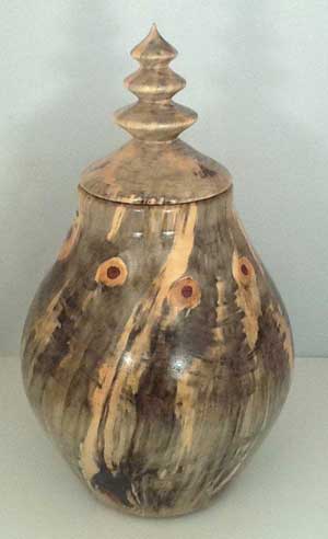 Most recently, he presented his work at a show where “a lady introduced herself as the director of one of the largest funeral homes” in the area and asked if he could make cremation urns. Bob has been doing many of those, as well as urns for pets’ remains. “A lot of people are doing this, to put it up on a shelf and be a memory of Fido — or Grandpa,” Bob said.