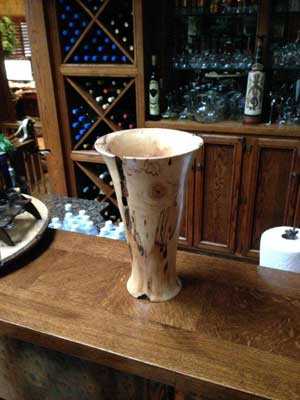 Although Bob still does that sort of thing, these days, his primary interest is in woodturning. “I like to turn large pieces,” like vases, Bob said, although that doesn’t rule out such items as bowls, salt shakers and pepper grinders, and customer requests as well.