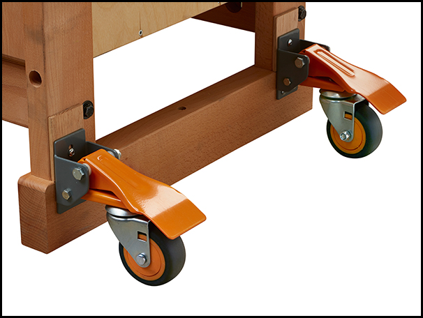 Bora Tool’s new PM-900 Workbench Caster Kit provides an all-swivel solution that can make it easy to move full-size workbenches around the shop without lifting. Each rubberized 3-in. wheel will support up to 155 lbs., which Bora reports is up to 50 lbs. more than other similar kits. The wheels are non-marking, and their diameter makes it possible to roll a bench smoothly over uneven floor surfaces. A heavy-duty foot lever mechanism, borrowed from Bora’s machine mobile base family of products, makes it easy to engage the wheels by pushing down or lifting the lever to lower a bench for use. Steel brackets with included hardware enable the casters to be retrofitted to most workbenches.