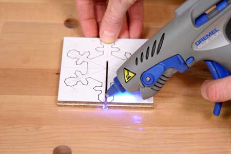 Step 5: Fill the ends of the slots with a dab of hot-melt glue. The glue will add rigidity to the pattern areas around the slots when cutting out the snowflakes (see Photo 4).