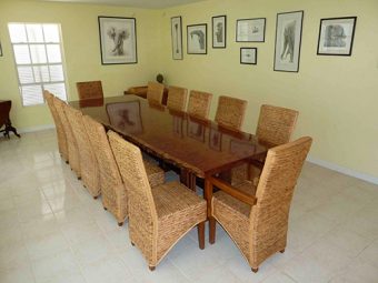 This is a double live edge bubinga table on a black walnut base 12′ long x 51″ wide x 2″ thick weighing over 700 pounds. I started woodworking a few years ago and built my dream workshop and now live in semi retirement in the Turks & Caicos Islands.