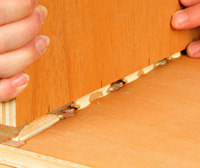 An easy way to strengthen carcass assemblies is to add nails (photo below) or screws, to hold the joints together while the glue dries. This is fine for utility drawers, boxes and cabinets that aren’t subject to much stress and strain during use. However, such assemblies have very little resistance to racking-the tendency of the frame or box to flex diagonally. Never use glue and nails to assemble an end-to-edge butt-joined solid-wood frame: The wood’s porous end grain doesn’t provide any strength when glued, and any flexing or stress easily breaks the weak glue joint and pulls the nails out, which have very little withdrawal resistance.
