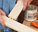 But before cutting any parts, it’s wise to make sure the saw you’re using for cuts (compound miter saw, table saw and miter gauge, etc.) is cutting smoothly and precisely. I like to take a test cut or two and check the cut ends and edges for squareness with an accurate try square (photo above). For a perfectly square assembly, it’s crucial that each opposing pair of sides be cut to identical length. Use a fence and stop with your miter saw (or table saw and miter gauge) to assure consistent lengths.