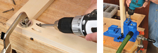 A popular way to create reasonably strong butt joints is with pocket screws. This system uses steeply angled, counterbored holes drilled into one butt joint member – a frame rail, cabinet side, carcass bulkhead, etc. Screws driven into the holes pull the parts together and secure them firmly (left photo above). Pocket screwed butt joints are quick to assemble and require no glue, so there’s no squeeze-out or messy drips to clean up afterwards. Also, pocket screwed joints can be disassembled, in case you make a mistake or want to take your project apart in the future.While it’s possible to drill the angled holes necessary for this joint using a regular electric drill or drill press, you’ll get cleaner, more precise holes by using a special jig. The Kreg pocket hole system (right photo above) uses a special jigs with drill bushings, clamps and a stepped drill bit to bore clean, perfectly angled and spaced holes in your workpieces.