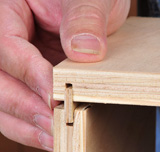 An alternative to biscuits, splines are narrow strips of wood inserted into slots cut in the surface of a butt joined assembly. These slots can be cut using a table saw and dado blade or a router fitted with a kerf-cutting bit. You can either rip splines from thin plywood (1/4 in. Baltic birch ply works well), or cut solid-wood splines with their grain running in the short direction. Splines can be used to strengthen butted frame joints, but are more often employed on butted carcass joints, such as used to build a chest or cabinet. To be most effective, the spline should run the full length of the joint.