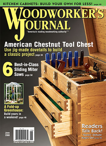 Projects Include: Dovetailed Tool Chest, Upper Kitchen Cabinets, Fold-up Greenhouse, Sandpaper Cutting Jig