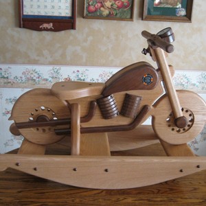 I designed this rocker by visiting a local Harley shop, and I picked up a few accessories to add to it, including the simulated speedometer, the key and the Harley logos inset in the tank.