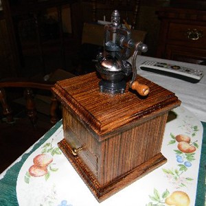 This is a pepper grinder. It is made out of zebrawood. It has four coats of shellac for a finish.