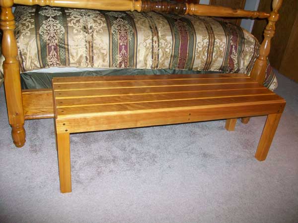 Here is the completion of a year-long (off and on) project to make a cherry four post bed. The posts and solid and made from reclaimed barn beams. There are 23 individual turnings that make up the bed. After putting the bed in place we needed and bench at the foot of it so I made a simple garden bench out of the left over cherry stock. It was the biggest turning project I have done so far. Now my wife says I need to make four more, one for each daughter.
