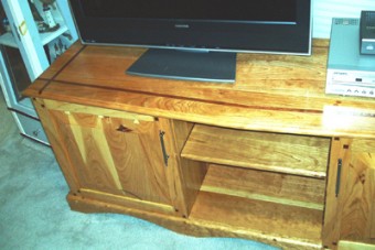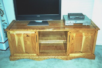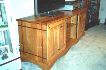 I made this TV cabinet from cherry with Brazilian cherry inlays.  Behind the doors are drawers for DVDs.