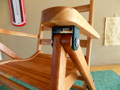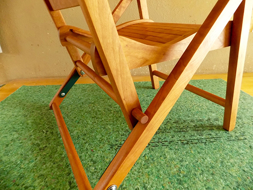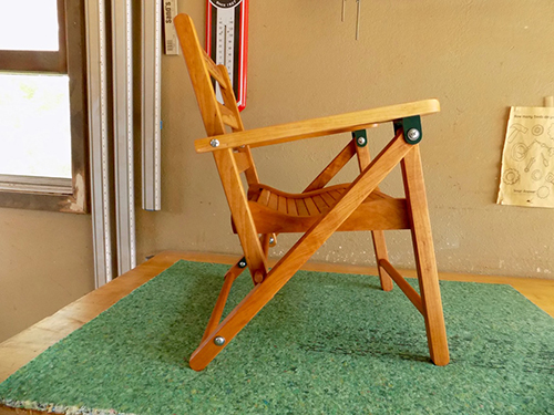 This is a chair that folds up for kids up to about 6-7 years old. The wood is all cherry with three coats of danish oil finish. I make the brackets out of aluminum and paint them with epoxy.