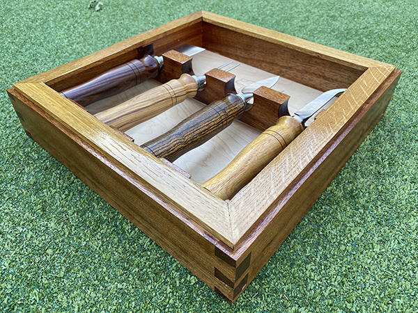 “Here’s a cheese set and presentation box I made with turned handles and Rockler hardware.” – Jim Imgromm