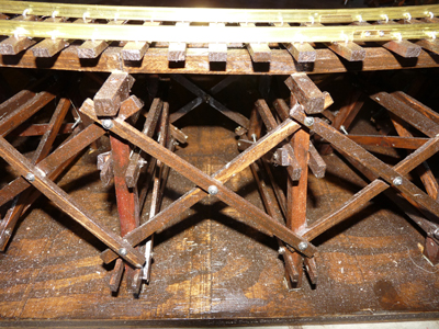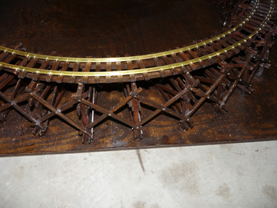 This is the ultimate G-gauge Christmas tree train. The 36 trusses, and all cross members (inside and out) have through bolts and washers to hold them together. It is a four foot circle with all hand cut ties and hand pounded spikes. It is made from red wood and cedar. I lost count after a 1,000 pieces. This will be something the kids will enjoy getting out every Christmas.