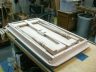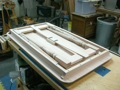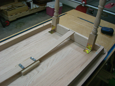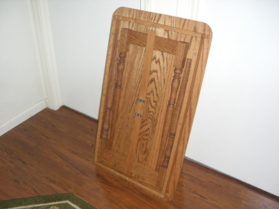 I saw this in your October 2013 issue and had to build it. The table is red oak with a Watco medium walnut, oil finish protected by a paste furniture wax. I was all set to shop make the spring, but got lucky and found quarter inch thick red oak at my local box store. The metal hold downs on the spring are half inch flat bar, also from the box store. I could not find heavy enough hinges locally. These are from Rockler and work very well.  This project worked great as a side table during Christmas dinner! I am working on the templates for the “Officer’s Chair” featured in another issue of the Journal.