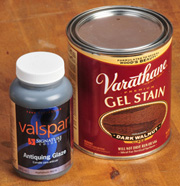The simplest method is to buy off-the-shelf glaze. It is formulated to dry slowly enough to give you time to blend it evenly on the surface. I was able to find pre-mixed waterbased glazes at most of the major home improvement stores, but there were very few colors available. Just across the aisle, stacks of familiar oil based gel stains offered a huge range of color options, and most of them will also work nicely as glazes right out of the can.