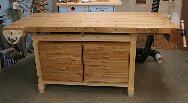 “I made the classical workbench. Like you, Rob, I mostly work with power tools. However, just having this bench encourages me to use my plane and chisels when appropriate. I am moving and decided to sell all my equipment rather than move it. Others have bought good equipment at a reasonable price and I saved the cost of moving everything. I hope to build a larger shop and upgrade the machinery at the other end. In the mean time, I have hand tools and a good bench.” – Robert Fuller