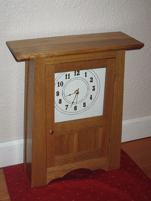 I downloaded some plans a few months back of this Craftsman Clock from the site. I had some white oak scraps left over, so I thought this would help put those to good use. After a couple of months working on it an hour here and an hour there, I now have a nice finished product to put in our living room.