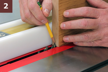 STEP 2: Raise the blade to 1/4″ and lock it. Now, loosen the rip fence, and with the workpiece against it, adjust it so the blade falls into the center of the wood as in Photo 2. No need to measure here: just eyeball it till it looks centered, and lock the fence in place. The truth is that even with meticulous measuring, it’s incredibly difficult to center this cut perfectly, so we’ll use an old cabinetmaker’s trick.