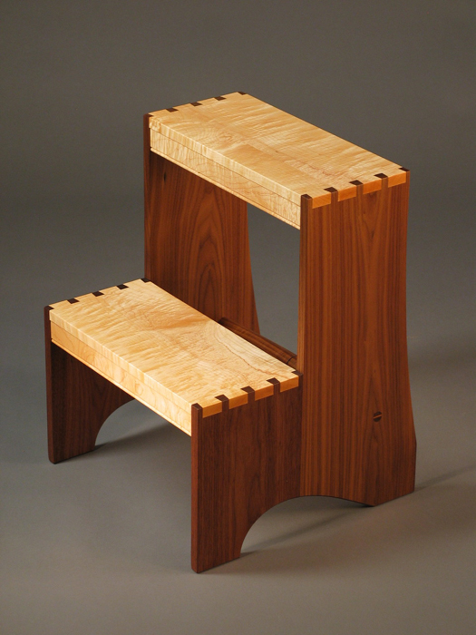 “While I don’t do multiples, I often duplicate a style, typically as custom orders in different sizes and woods. People are really specific these days, and thanks to that, I have never done two of any piece, except for a simple step stool I make. That is my only production item. It allows me to use up scrap wood and offers customers an entry-level piece they can buy inexpensively. I’ve learned to appreciate a well-executed piece no matter how simple and no matter what style it represents.”