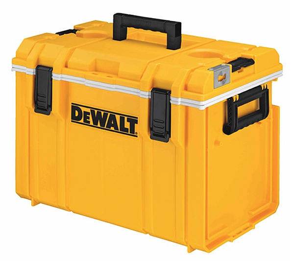 DEWALT’s new ToughSystem Cooler provides 27 quarts of storage space, five days of ice retention and an IP65 rating for protection against water and dust. A removable tray is included, and the cooler’s lid features two cup holders and a convenient bottle opener. Measuring 14-3/8 in. wide x 21-5/8 in. long x 16 in. tall, the cooler can be stacked with any other ToughSystem® module using the side latches. It’s compatible with DeWALT’s ToughSystem® Trolley, Van Racking and Workshop Racking for ultimate stability and security during transit.
