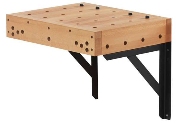 It’s clamping platform with steel supports can be detached from the workbench and placed on a wall to act as a separate workspace. A variety of accessories can be added onto the platform, both on top and around the skirt, including jaw cushions, a steel anvil, holdfasts and more.