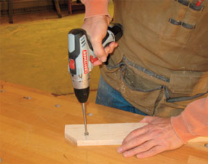 Next, cut out the screw strip. While the length measurement in the Material List should technically be correct, with a piece like the screw strip, which is captured in an enclosed space, it is always good to measure the actual opening before you cut it to length. You will need to drill at least two countersunk screw holes in the screw strip before you glue it in place; locate those holes so that at least one of them hits a wall stud where you are installing the unit.