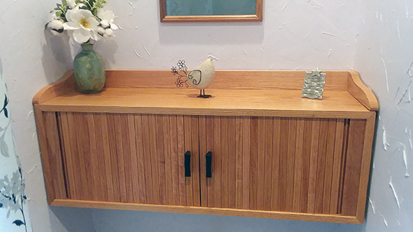 “I have made many things from wood over the years, and I keep a photo log of them. Well, most of them anyway. But I have a couple favorites. I made a demi-lune table some years ago and I have it in my home. My daughter liked it so much, I made a second one. It was from a plan. The other is a tambour door cabinet for a bathroom. My house was built in the late 1950’s, so I think it fits right in.” – Steve Kendall