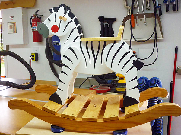 “Here’s a zebra rocker I made for the Arizona Humane Society to auction at one of their fundraising events. I used wood from some furniture I took apart that had belonged to my mother. I saved it for years to make something real special. She always loved animals, so I knew it would have made her happy. I have no idea who got it, but I’m sure my mother was smiling down from heaven, and hopefully it gave the child who received it a lot of happiness!” – Lori Scott
