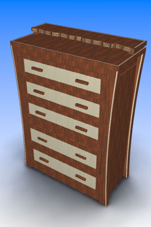 “I don’t know what to call my style. I have made things for other people to their style preference, but when it comes to what I like best, I can’t figure out what to call it. I am beginning to work on a bedroom set for myself. I learned how to use SketchUp and designed it there. Here are renderings of the nightstand and dresser that I designed. Maybe someone can tell me what style it is.” – Bob Baisley