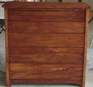 Five drawer chest with full extension glides made from a Pecan tree I cut down in my yard.