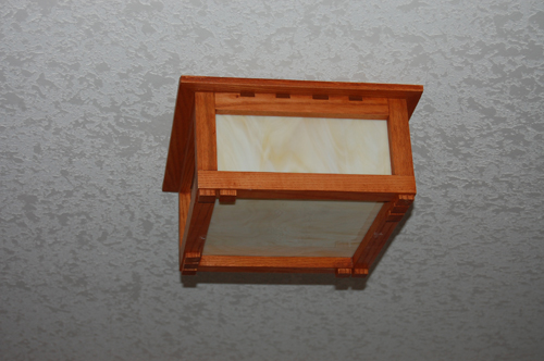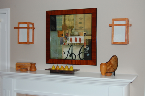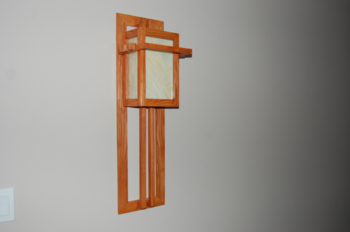 I took inspiration from Frank Lloyd Wright’s Little House. The ceiling light has air circulation slots with the same dimensions as the small blocks on the wall sconce. The mantle sconces are similar to the wall sconce minus the long backing pieces.