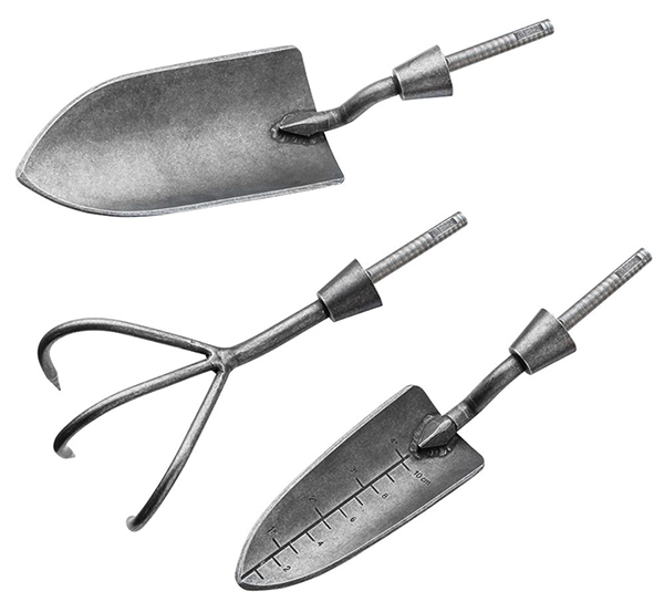 Rockler’s new Gardening Tool Turning Kit includes a hardened-steel trowel, transplanter and cultivator; you turn the handles from the wood species of your choice in a size and shape that best fits your hands. The trowel has a curved, 2-3/4-in.-wide blade for general digging, planting and rooting out difficult weeds. The transplanter has a tightly curved, 2-in.-wide blade with markings up to 4 in., so you can plant to precise depths. The three-pronged hand cultivator will help to loosen soil, rake in soil amendments and remove weeds. All three tools have a matte stonewashed black oxide finish.