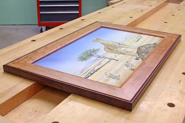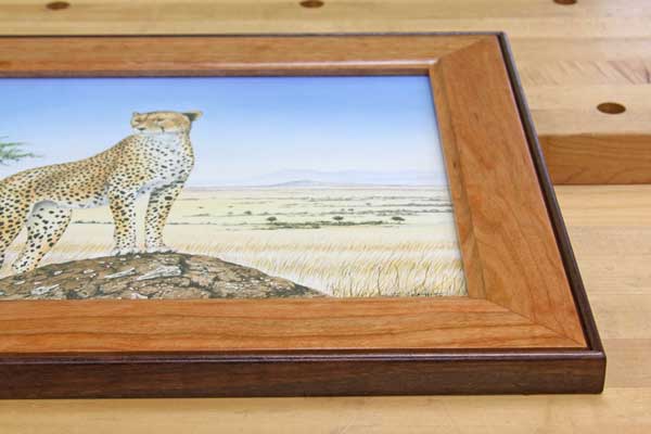 Almost two years ago, our family was fortunate enough to take a trip to Africa, and we purchased an original watercolor painting from our guide to remember our time in the Masai Mara National Reserve. My wife has wanted it framed ever since, and now it is. Her Christmas gift is made of cherry back-banded with walnut. I used half-lap miter joints to bring the frame members together and added a beaded profile to the walnut to create shadow lines. She loves it. – Chris Marshall, Field Editor
