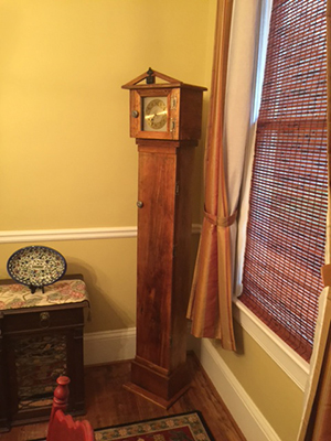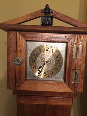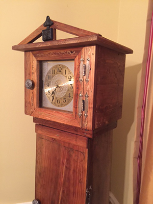 I like clocks so I decided to build a grandfather clock. I had some nice old pine from a demolition of a building. The cost of the pendulum clock was to high for me now. I used a quartz clock with battery operated Westminster chimes. The clock face seemed appropriate for the wood. I can add a pendulum clock at a later date.