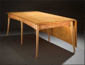 One project which did utilize maple (bird’s eye, in this case) was the Not-So-Shaker Dining Table, a project Greg made on commission for a woman who wanted “a massive dropleaf that would expand into a massive dining table.” Measuring 8’ x 2’ – 8’ x 5’ when expanded – the table is hinged on a collapsible rail system along its width. “It allowed me to experiment with machining, with something I couldn’t learn from a book,” Greg said.