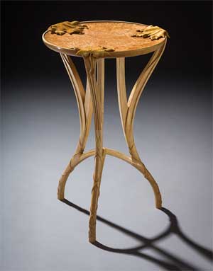 For instance, the piece he made for the 2012 New Hampshire Furniture Masters Auction, “Lindsay Maple,” expanded on the organic form, Greg said. The sugar maples outside his shop served as inspiration for the table.